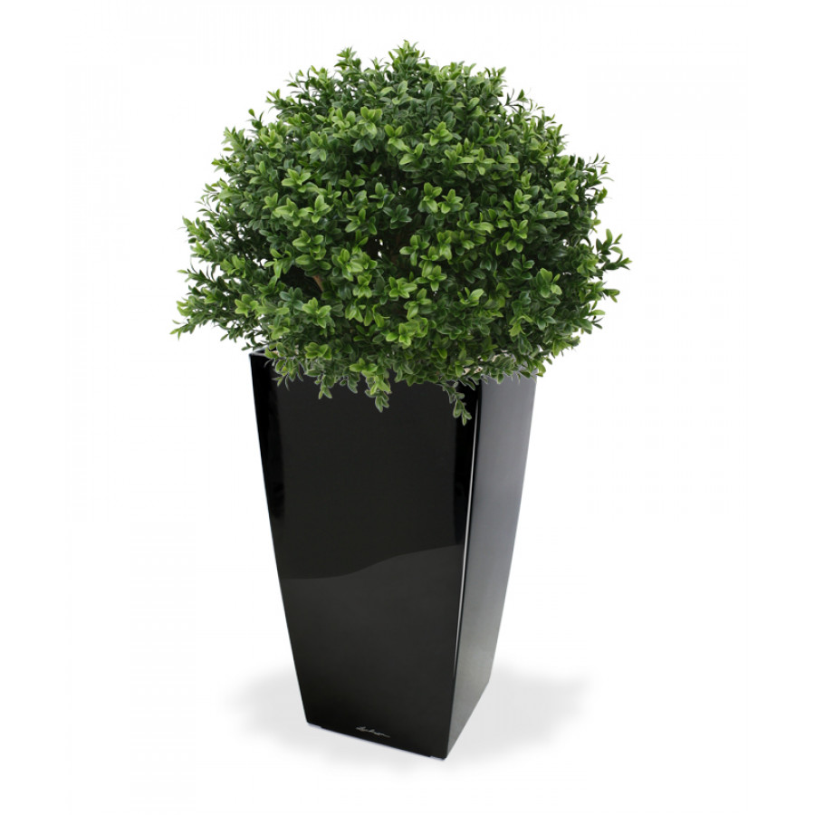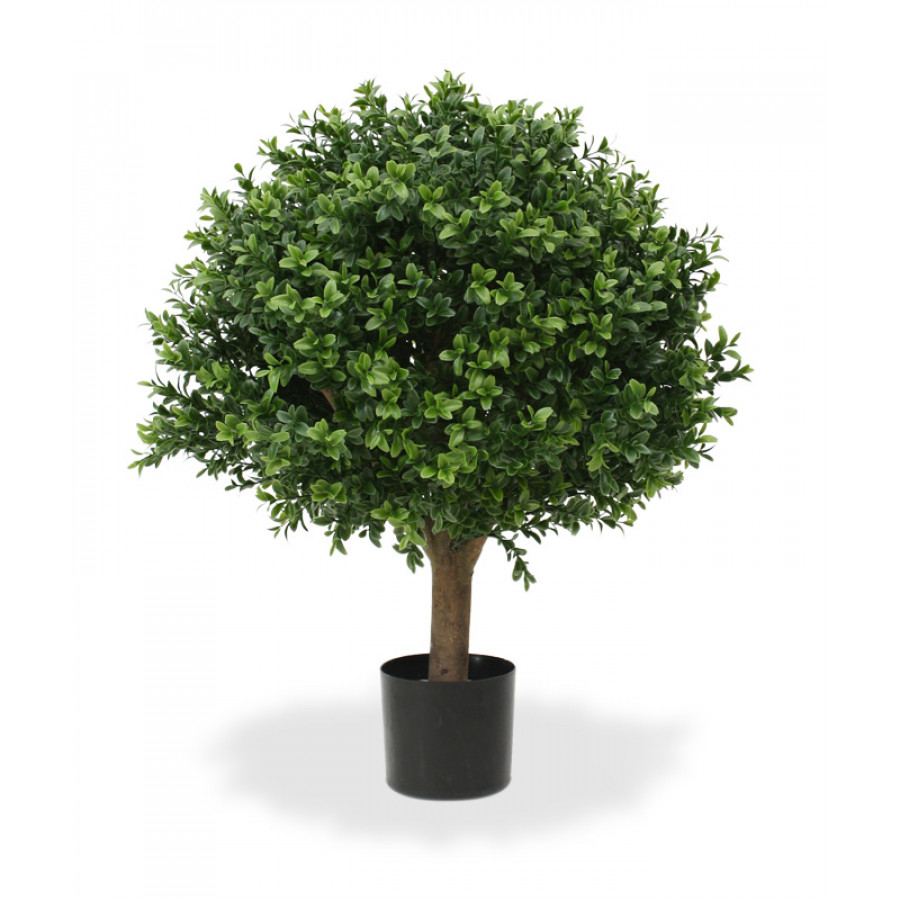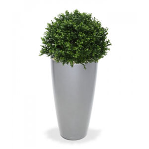 špičková imitace buxusu s přírodním kmenem. Standardně dodáváno ukotvené v plastovém květináči (11 x 10cm).