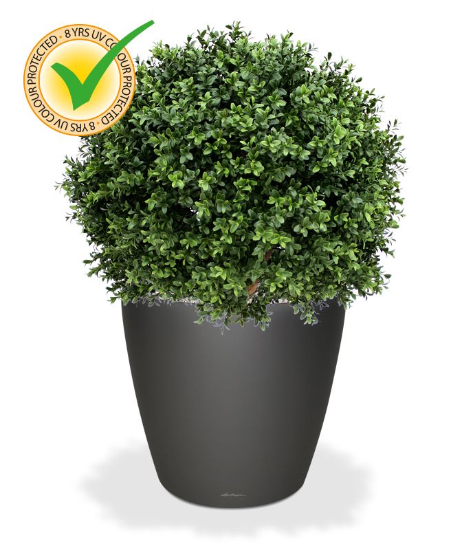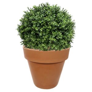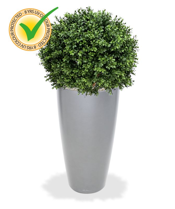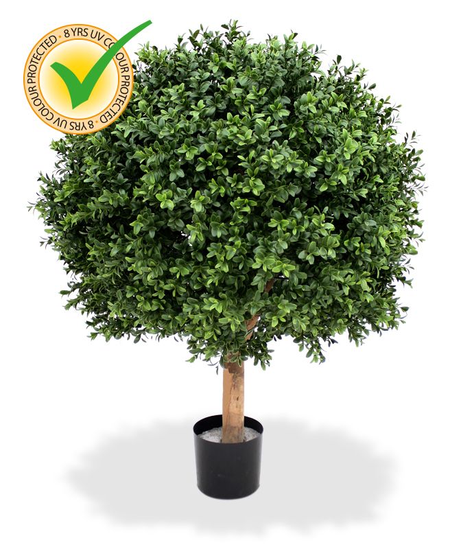 Umělý kulovitý buxus na přírodním kmínku. Výška 80cm, průměr koule 60cm. Vhodný do exteriéru díky materiálu s UV ochranou.
