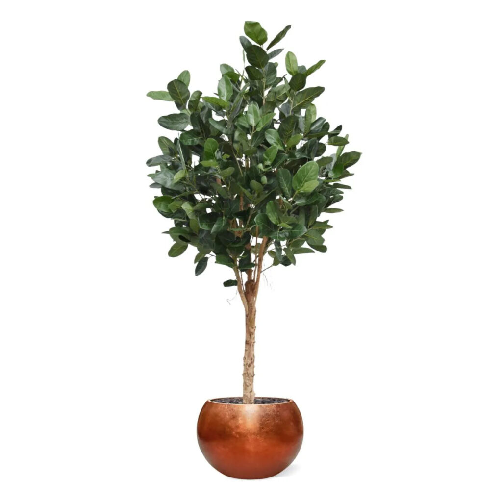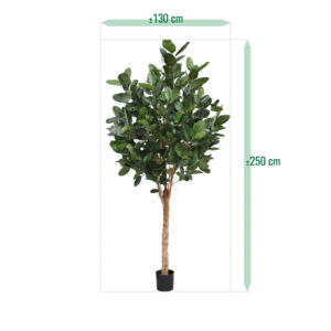 Špičková imitace fikusu s velkými listy. Kmen vyroben z přírodního dřeva. Standardně dodáváno v plastovém květináči.