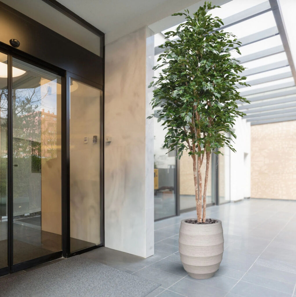 Ukotveno v plastovém květináči, průměr 140cm.