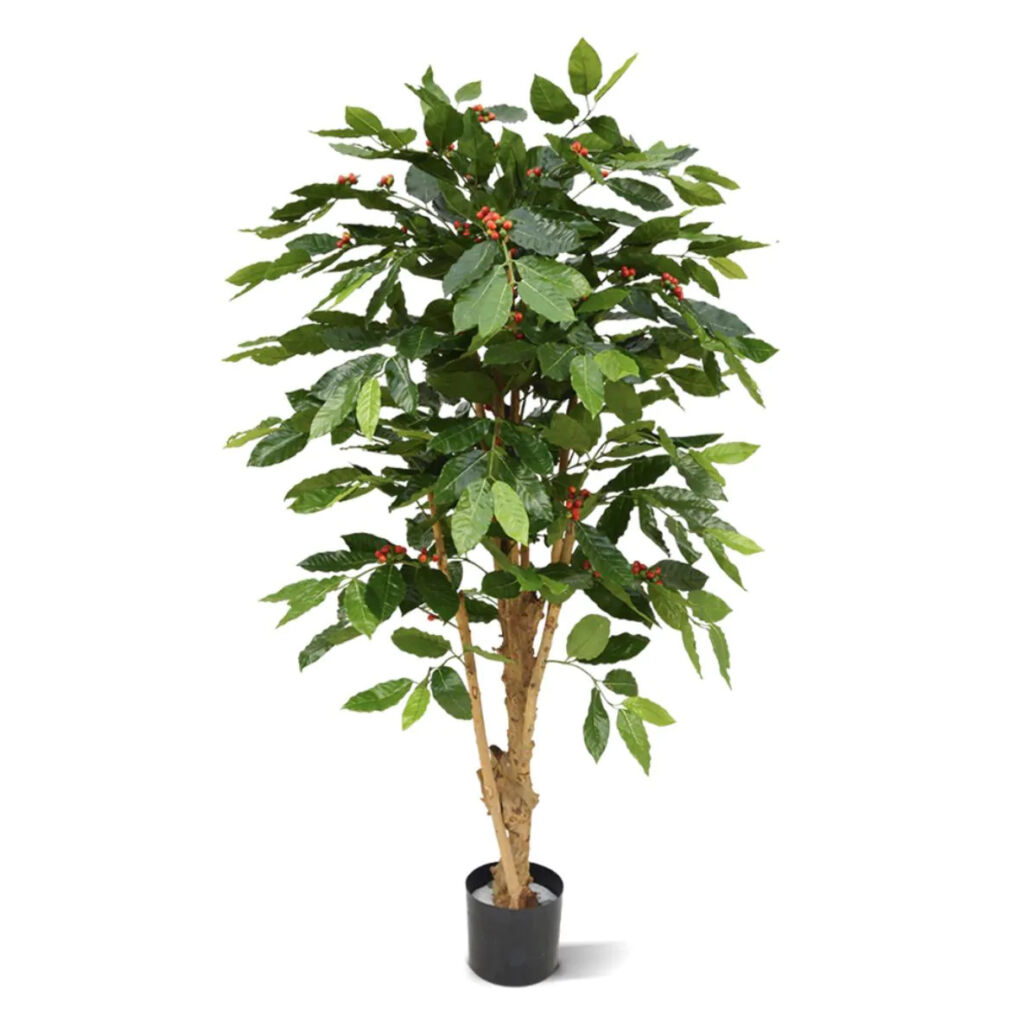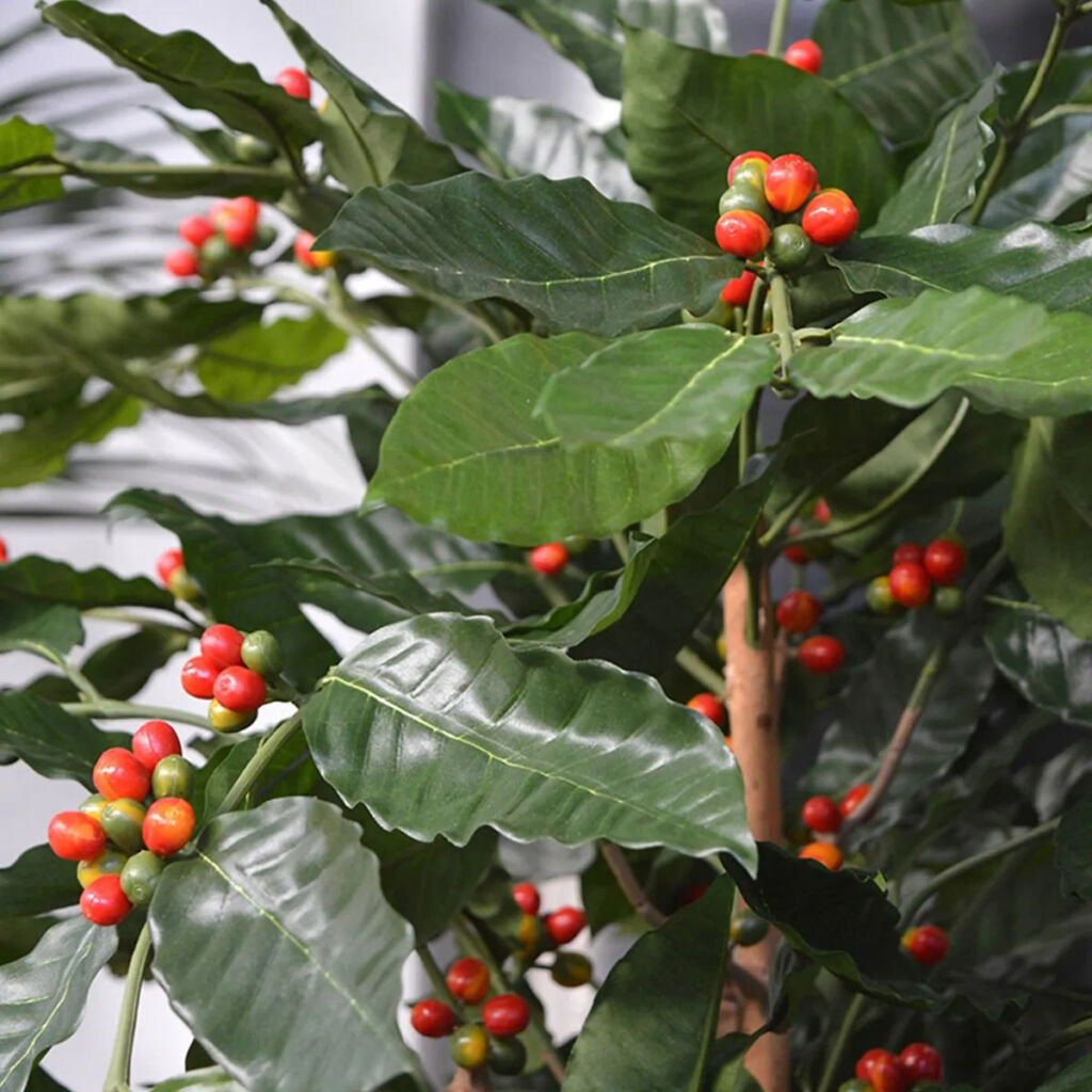 Kávovník s plody. Ukotveno v plastovém květináči.