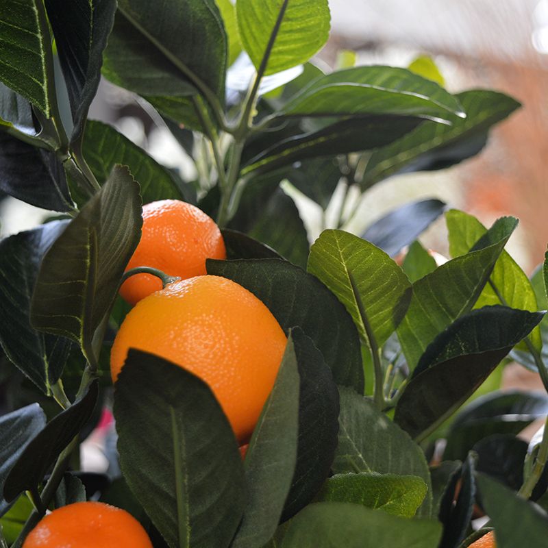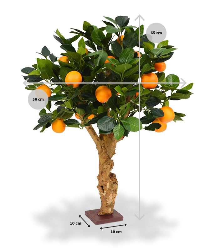 Imitace pomerančovníku – bonsai s plody na přírodním kmeni. Výška cca 65cm, průměr koruny 50cm.