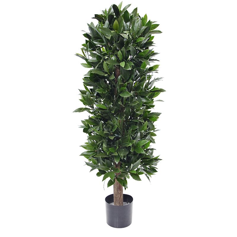 Umělý vavřín na přírodním kmínku. Výška 125cm, průměr 45cm. Vhodný do exteriéru díky materiálu s UV ochranou.