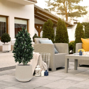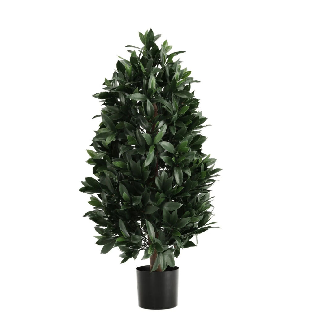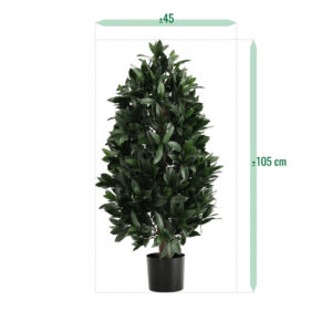 Umělý vavřín na přírodním kmínku. Výška 105cm, průměr 45cm. Vhodný do exteriéru díky materiálu s UV ochranou.