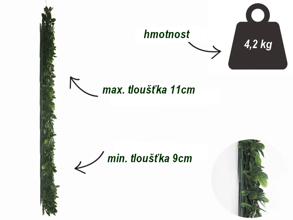 Imitace živého plotu na elegantní nastavitelné mřížce z odolného plastu.