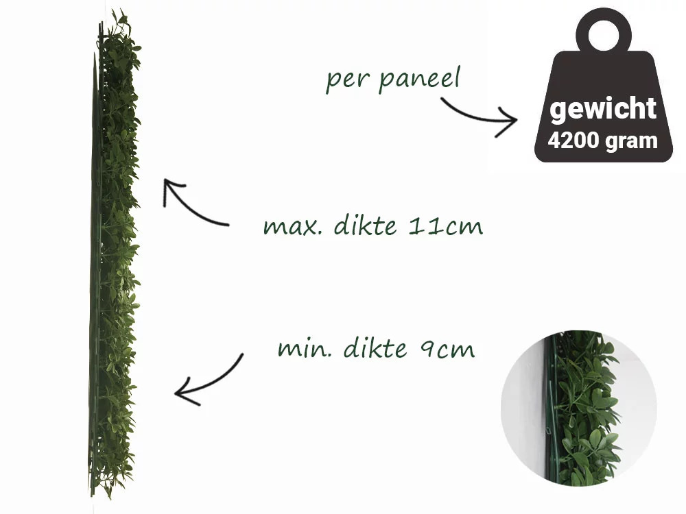 Imitace živého plotu na elegantní nastavitelné mřížce z odolného plastu.