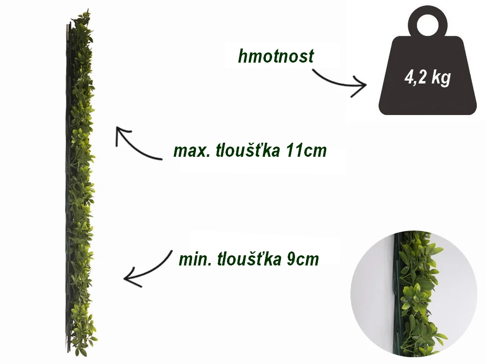 Imitace živého plotu na elegantní nastavitelné mřížce z odolného plastu.