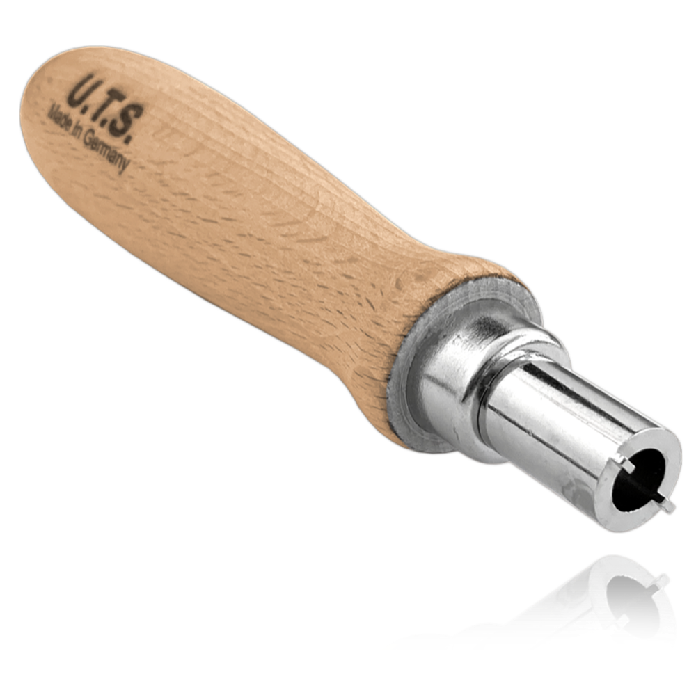 Speciální hodinářský utahovák slouží k upevnění centrálního fixačního šroubu, držícího hodinový strojek a desku hodin pohromadě, a pasuje na všechny šrouby z německé dílny UTS.