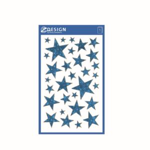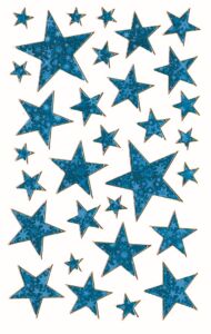 38 ks samolepek v balení, fóliové, permanentní lepidlo, motiv hvězdičky. Balení obsahuje 1 aršík vyobrazených samolepek.