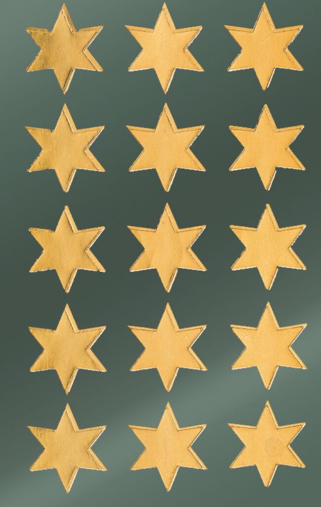 30 ks samolepek v balení, papírové, permanentní lepidlo, motiv hvězdičky. Samolepky s vánoční tematikou na výzdobu, ruční tvořivost, vánoční dárky apod.