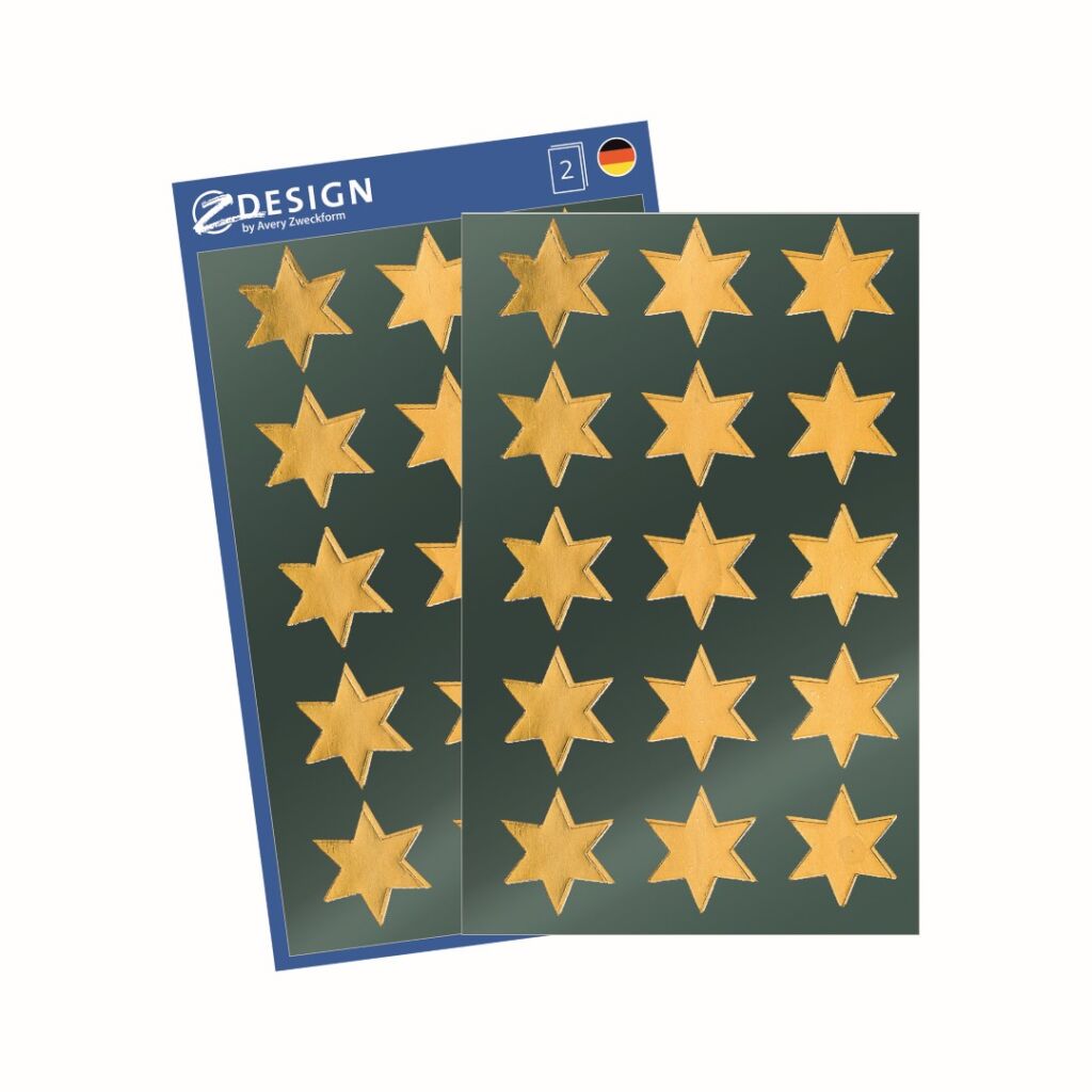 30 ks samolepek v balení, papírové, permanentní lepidlo, motiv hvězdičky. Balení obsahuje 2 stejné aršíky vyobrazených samolepek.
