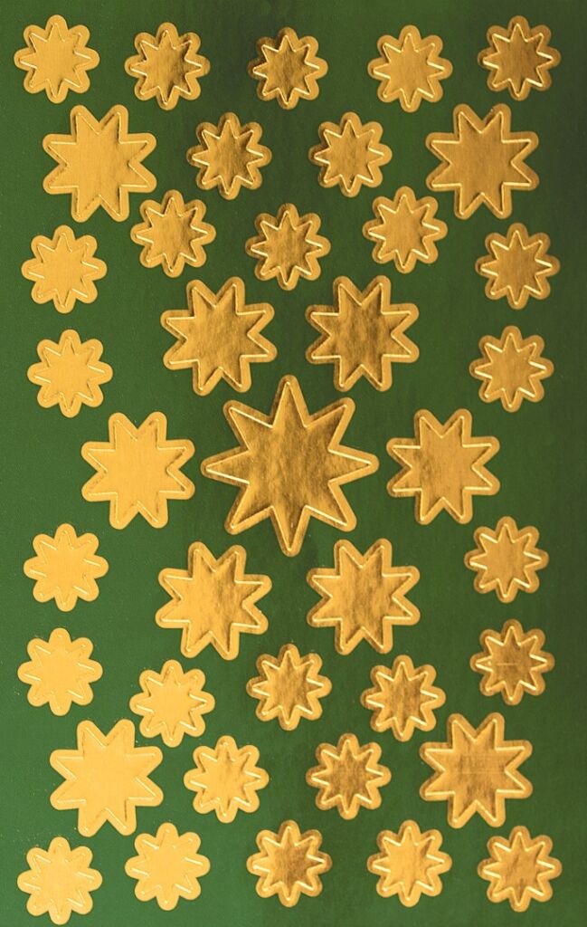 78 ks samolepek v balení, papírové, permanentní lepidlo, motiv hvězdičky. Samolepky s vánoční tematikou na výzdobu, ruční tvořivost, vánoční dárky apod.