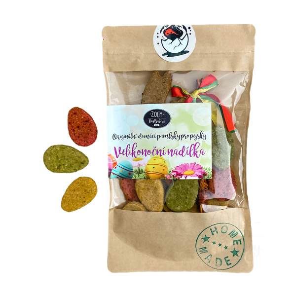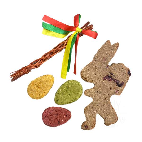Když k nám běžel zajíček, na zádech měl balíček! A co v něm bylo? No přece velikonoční nadílka pro pejsky. Uspokojte sváteční chutě vašeho miláčka pamlsky ve tvaru vajíček, ušáků a jediné přijatelné pomlázky na psí holky.
