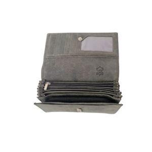 Najdete zde 7 prostorných přihrádek na bankovky, 6 slotů na karty, kapsičku na fotografii, zipovou kapsu na mince, přední přihrádku na účtenky a dvojité zapínání s možností rozšíření, které poskytuje flexibilitu i při větším objemu hotovosti. Kvalitní dvojité šití speciální pevnou nití podtrhuje robustnost a spolehlivost.