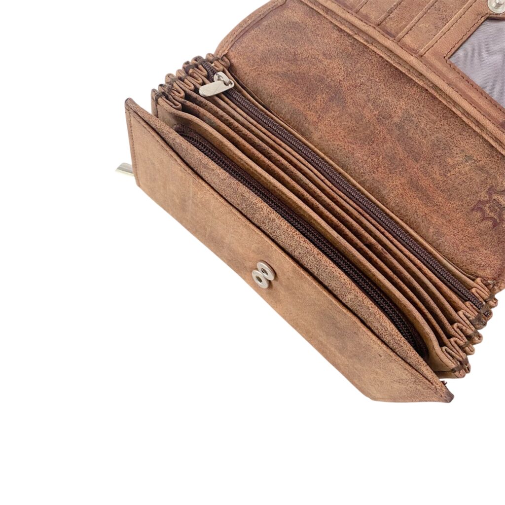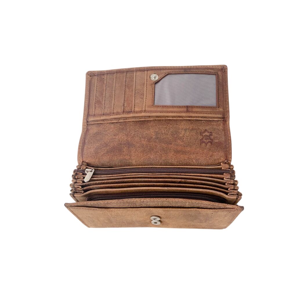 Kasírka nabízí 7 přihrádek na bankovky, 6 slotů na karty, praktickou kapsičku na fotografii, přední kapsu na účtenky či poznámky a velkou zipovou kapsu na mince. Zapínání je řešeno patentním rozšířením ve dvou velikostech, díky čemuž se přizpůsobí i většímu obsahu. Elegantní dvojité šití speciální pevnou nití zaručuje dlouhou životnost i při každodenním používání.