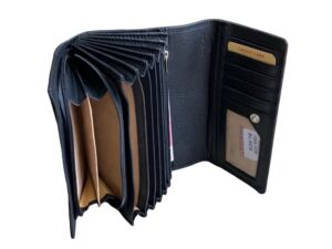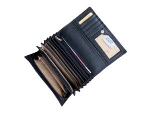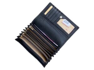 Mějte své tržby vždy pod kontrolou s velkou koženou kasírkou WOLF v elegantní černé barvě. Pravá, prošívaná kůže a precizní dvojité šití zajišťují dlouhou životnost i při každodenním používání. Navíc je vybavena RFID ochranou, která chrání vaše platební karty před neoprávněným skenováním.