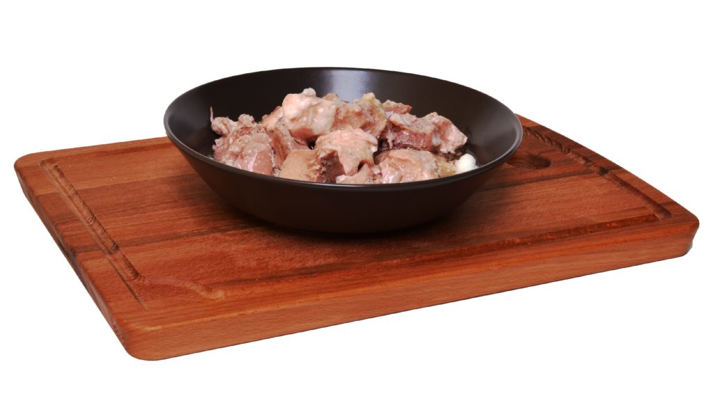 Vepřové maso 330 g – z toho vepřové maso 73%, voda 24%, vepřové kůže 4%.