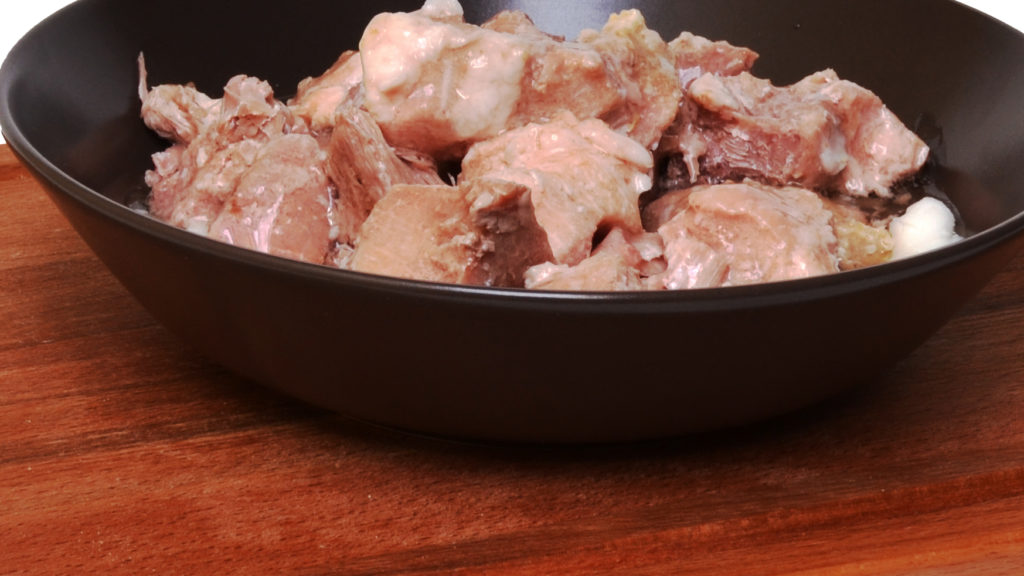 Vepřové maso ve vlastní štávě. Vepřové maso je šťavnaté a libové, chutná výborně také jen tak namazané na krajíci chleba.