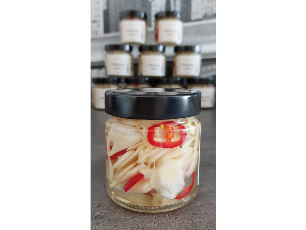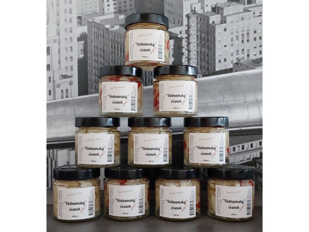 Vietnamský česnek je nakládaný český česnek v rýžovém octu s trochou chilli. Je ideální nejen do asijských pokrmů, ale i do české kuchyně. Bez konzervantů a přidaných látek.