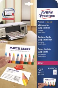 Vizitkový papír Avery Zweckform C32026-10 je ideální na malosériový tisk vizitek, pozvánek, jmenovek apod. Vytiskněte si sami vlastní vizitky jednoduše a rychle z pohodlí Vašeho domova nebo kanceláře. Aktuální vizitky tak budete mít okamžitě k dispozici, v množství, které potřebujete a navíc v profesionální tiskové kvalitě. Absolutně hladké a ostré hrany díky patentované technologii Quick&Clean™ – předsekaný karton zajistí jednoduché, rychlé a přesné vyjmutí jednotlivých vizitek z archu. Tyto vizitky lze potisknout z obou stran, čímž vzniká více prostoru pro doplňkové informace jako například mapku s vyznačením místa Vašeho podnikání, provozní dobu, firemní slogan atd. Při tisku se můžete spolehnout na plynulý průjezd archů tiskárnou bez uvíznutí a ostrý tiskový výstup, který se díky vynikajícímu ukotvení tonerového prášku nerozmazává. Potisknutelný vizitkový fotokarton Avery Zweckform C32026-10 je vhodný pro všechny běžné černobílé i barevné laserové tiskárny, kopírovací stroje a hodí se i pro psaní, resp. ruční popis.