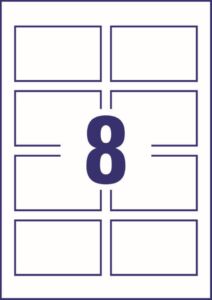 rozměr 85×54 mm, 25 archů A4, 200 ks vizitek v balení (8 ks/arch), gramáž papíru 260 g/m2, hladké hrany Quick&Clean, barva bílá. Typ tiskárny: inkoustová.