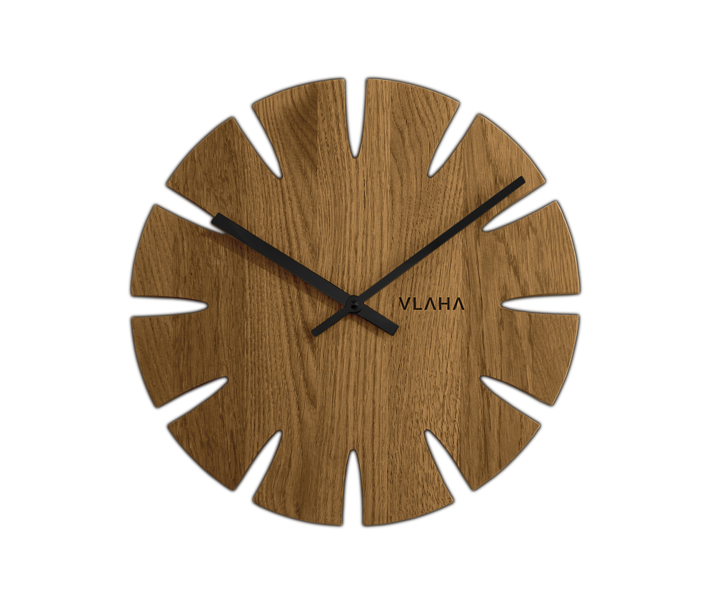 Vůně dubového dřeva a přírodních olejů se rozline ve Vašem bytě, jakmile na stěnu pověsíte nové dřevěné hodiny VLAHA.