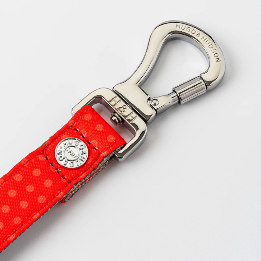 Vodítko je vyrobeno z omyvatelného materiálu a má pohodlnou rukojeť Hugo & Hudson, kterou je možné připevnit kolem nohy stolu. D kroužek pro připevnění pytlíků na exkrementy.  Je testován na 147 kg.   Vodítko má vysoce kvalitní nerezovou sponou na háčku s otočením o 360 stupňů.