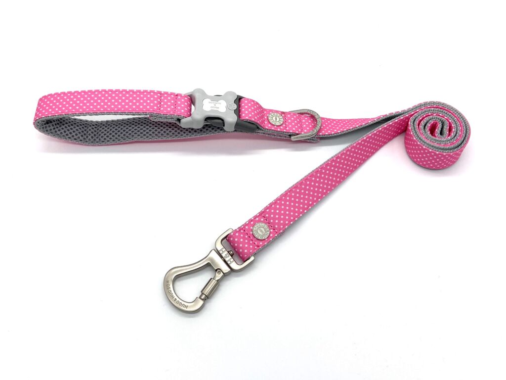 Vodítko je vyrobeno z omyvatelného materiálu a má pohodlnou rukojeť Hugo & Hudson, kterou je možné připevnit kolem nohy stolu. D kroužek pro připevnění pytlíků na exkrementy. Je testován na 147 kg. Vodítko má vysoce kvalitní nerezovou sponou na háčku s otočením o 360 stupňů.
