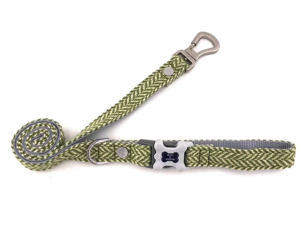 Tvídové vodítko je vyrobeno z omyvatelného tvídového materiálu a má pohodlnou rukojeť Hugo & Hudson, kterou je možné připevnit kolem nohy stolu. D kroužek pro připevnění pytlíků na exkrementy. Je testován na 147 kg. Vodítko má vysoce kvalitní nerezovou sponou na háčku s otočením o 360 stupňů.