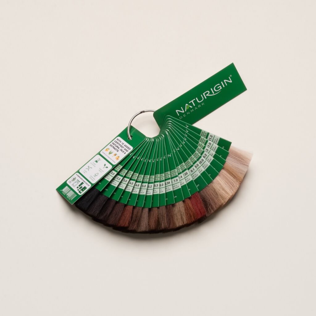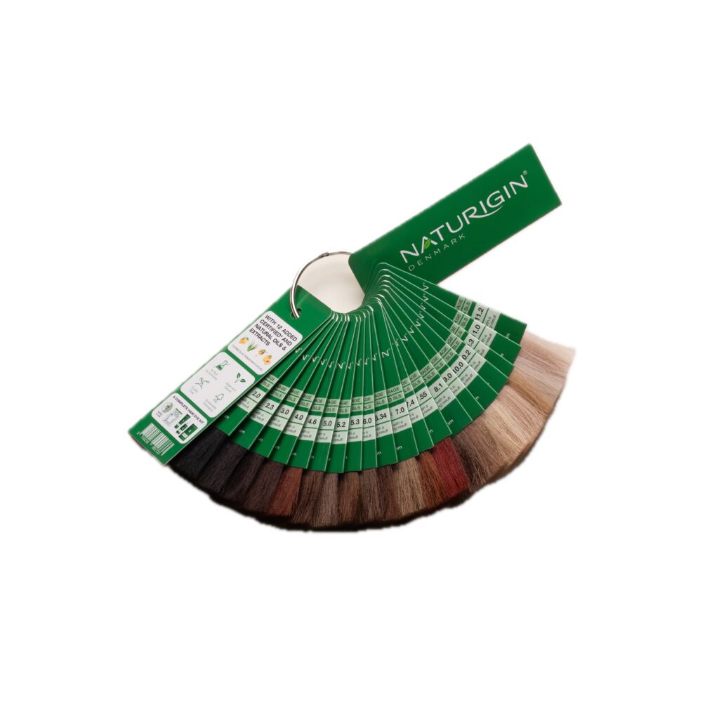 Vzorník permanentních barev na vlasy NATURIGIN určených pro domácí barvení. Vzorník obsahuje všech 19 odstínů barev NATURIGIN.