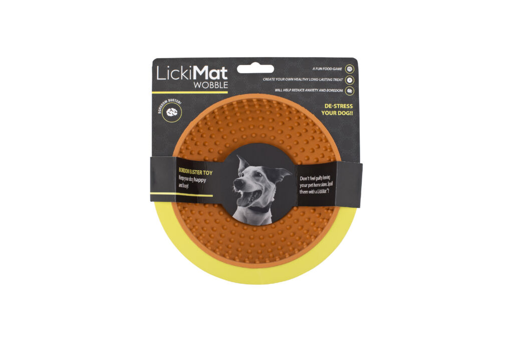 LickiMat Wobble je miska s gumovými bodlinkami uvnitř. Můžeme ji natřít arašídovou pastou, rybičkami z konzervy i mletým masem, nejideálnější je pro tekuté záležitosti, obzvláště pro jejich zamražení. Zkuste na sebe udělat několik vrstev, aby se pejsek s každým dalším líznutím přiblížil novému chuťovému zážitku a vy jste měli několik hodin klid.