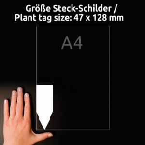 Oboustranně potisknutelné zapichovací štítky Avery Zweckform T3006-10 z pevné bílé polyesterové fólie. Ideální pro označování rostlin, stromů, keřů a všech kontejnerových rostlin v zahradnictvích, zahradních centrech a květinářstvích, jako zásuvné štítky pro venkovní označování cen a zboží v běžném maloobchodě a velkoobchodě, pro soukromé použití na zahradě i v domácnosti apod. Štítky jsou voděodolné, odolné proti roztržení, chemikáliím a UV záření – vhodné pro venkovní použití. Štítky můžete potisknout z obou stran, čímž vzniká více prostoru pro jakékoliv doplňující informace. Při tisku se můžete spolehnout na plynulý průjezd archů tiskárnou bez uvíznutí a ostrý tiskový výstup, který se díky vynikajícímu ukotvení tonerového prášku nerozmazává. Po vytištění lze jednotlivé visačky z předsekaného archu snadno a pohodlně oddělit. Odolné potisknutelné zásuvné štítky Avery T3006-10 jsou vhodné pro všechny běžné černobílé a barevné laserové tiskárny a hodí se i pro psaní, resp. ruční popis permanentním popisovačem.