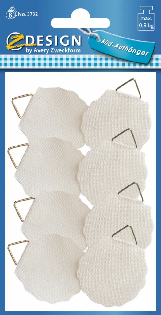 Pověste si na zeď obrázek, fotografii nebo jinou dekoraci bez použití vrtačky nebo kladiva. Naše samolepicí očka Avery Zweckform 3732 spolehlivě drží a unesou až 0,8 kg. Aplikace je velice snadná – lněný materiál s háčkem navlhčíte, umístíte na předem očištěný, nemastný podklad a po dobu minimálně dvou hodin necháte zaschnout. Poté už jen zavěsíte na zeď a máte hotovo. Praktické, cenově přijatelné a jednoduché řešení od Avery Zweckform.