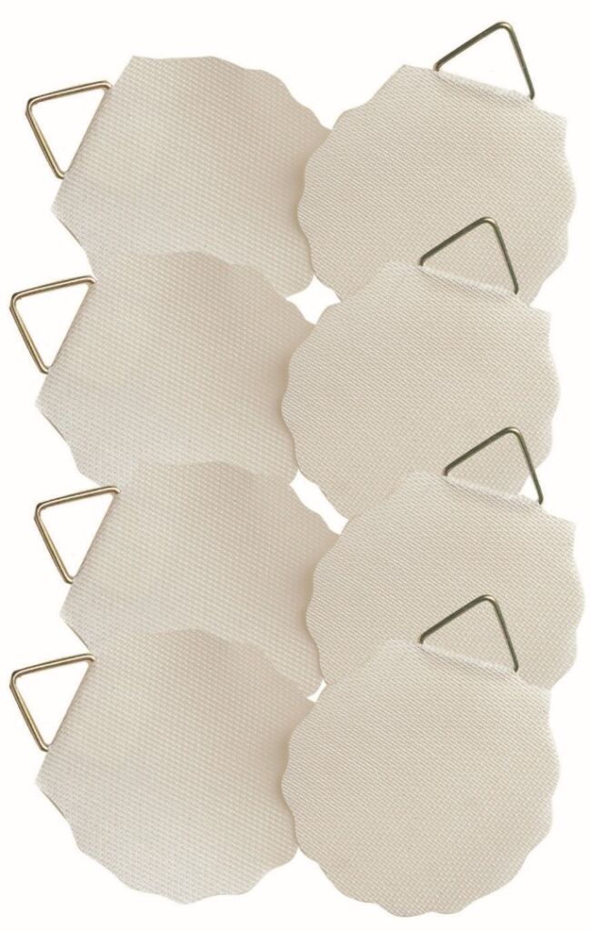 průměr 30 mm, 8 ks v balení, pevný lněný materiál s vloženým uchem. Samolepící očka na zavěšení různých předmětů vážících do 800 g.