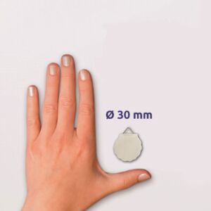 Průměr 30 mm, 8 ks v balení, pevný lněný materiál s vloženým uchem.