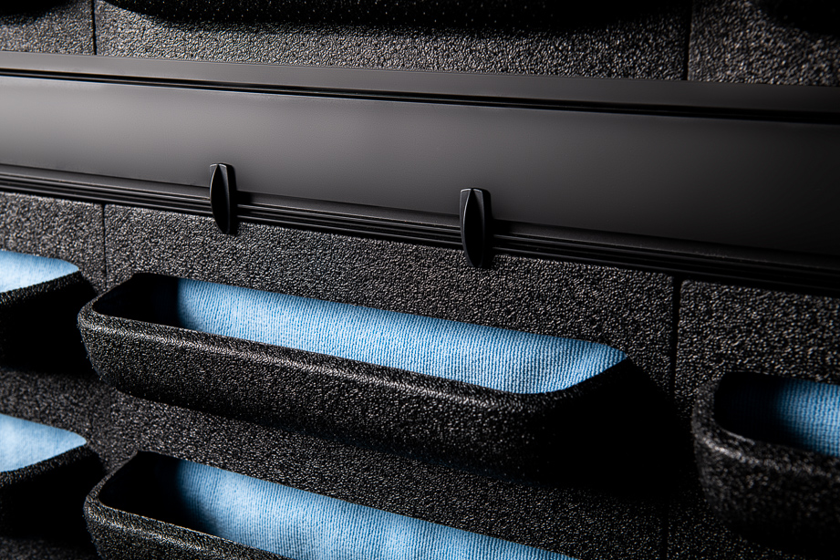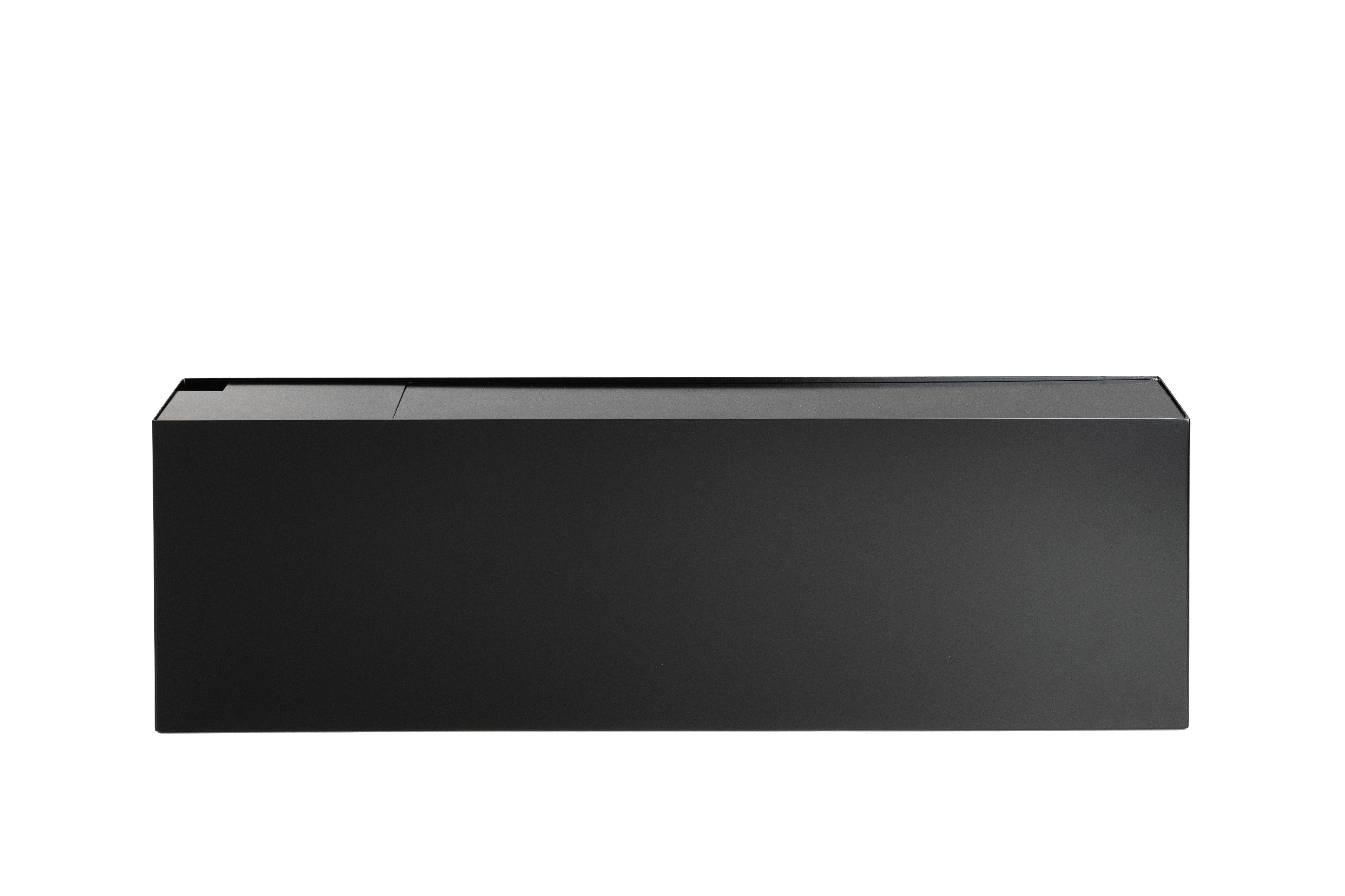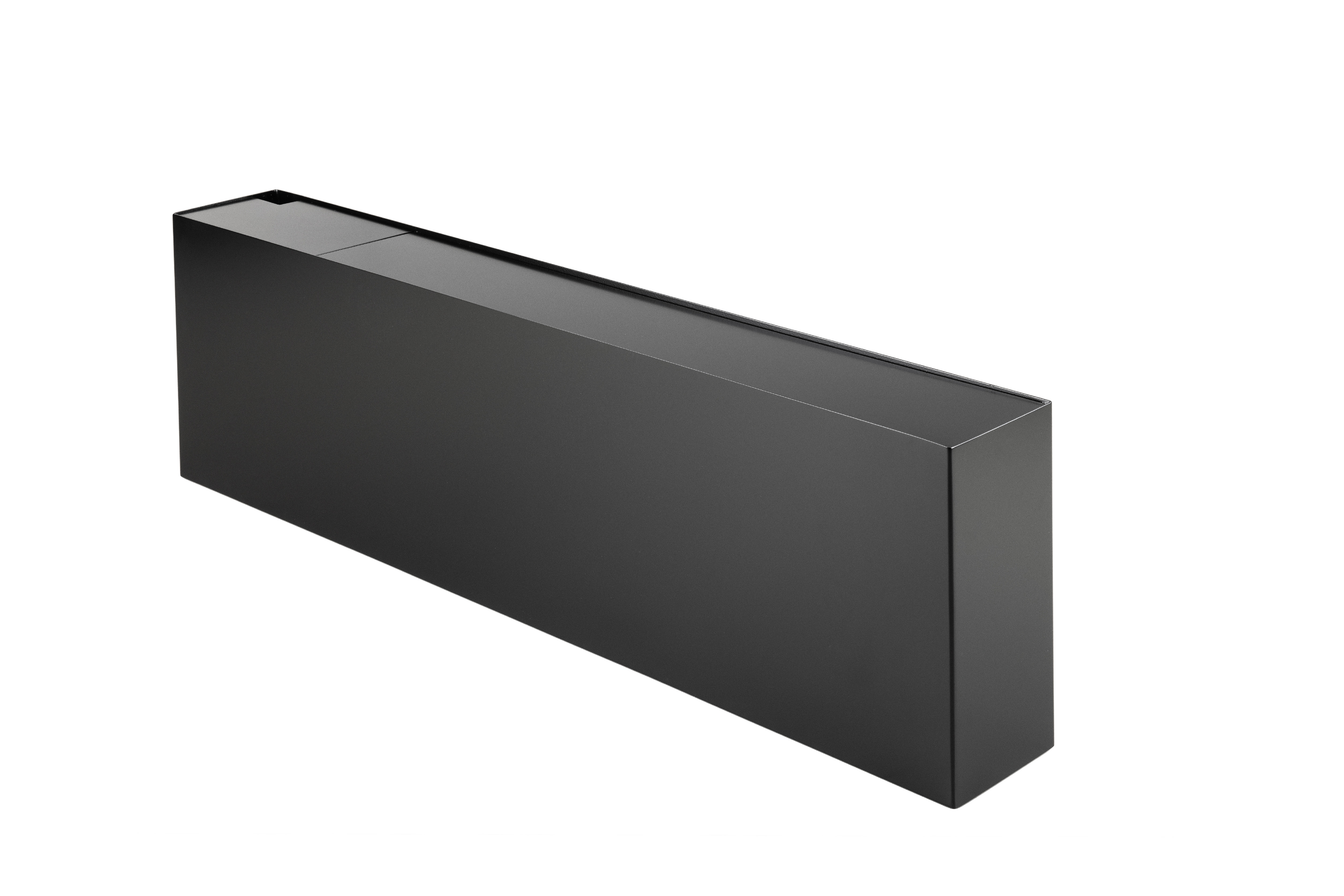 - Retenční nádrž v provedení černý mat (RAL 9005) – výška 42 cm, hloubka 18 cm, šířka nádrže je určena šířkou konstrukce stěny 251.5 cm