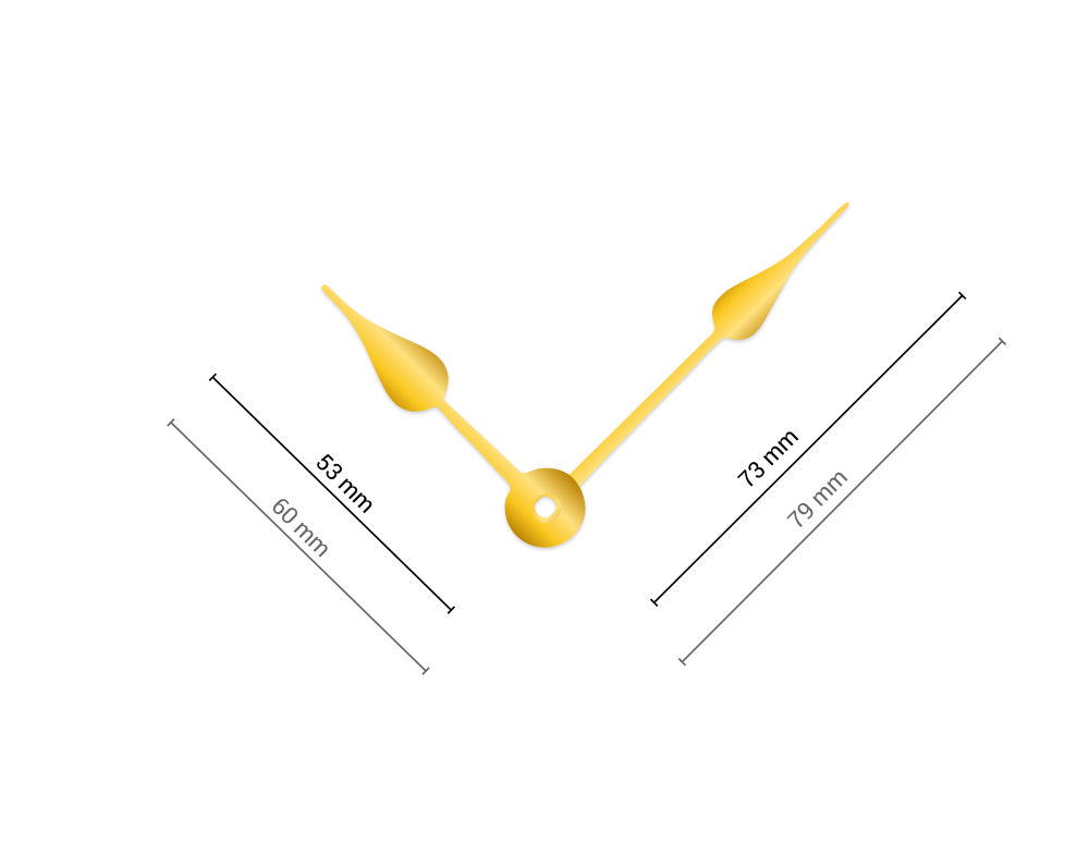 Zlaté klasické hliníkové ručičky na hodiny 73 mm | 53 mm