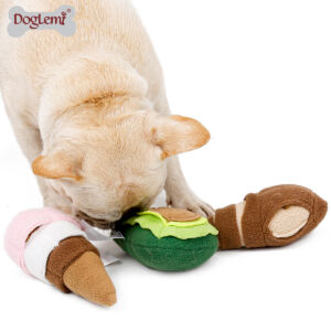 Úkolem psa je najít v kapsách na každé hračce skrytou pochoutku