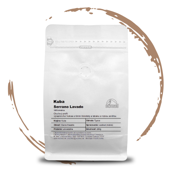 Čerstvo pražená zrnková káva - Kuba. Káva so silným telom, nižšou kyslosťou, ľahkou tabakovou, resp. dymovou a kakaovou chuťou.