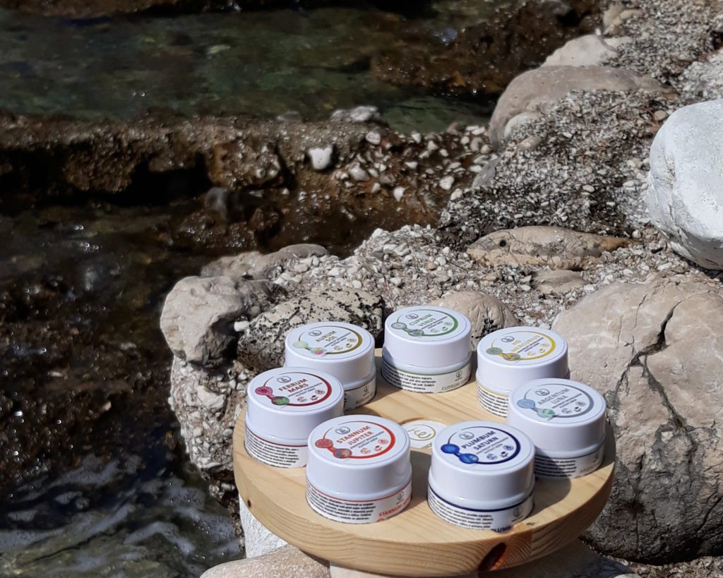 Internetový prodej biokosmetiky. Nabídka balzámů na rty, deodorantů, masek na obličej a pleťových krémů.