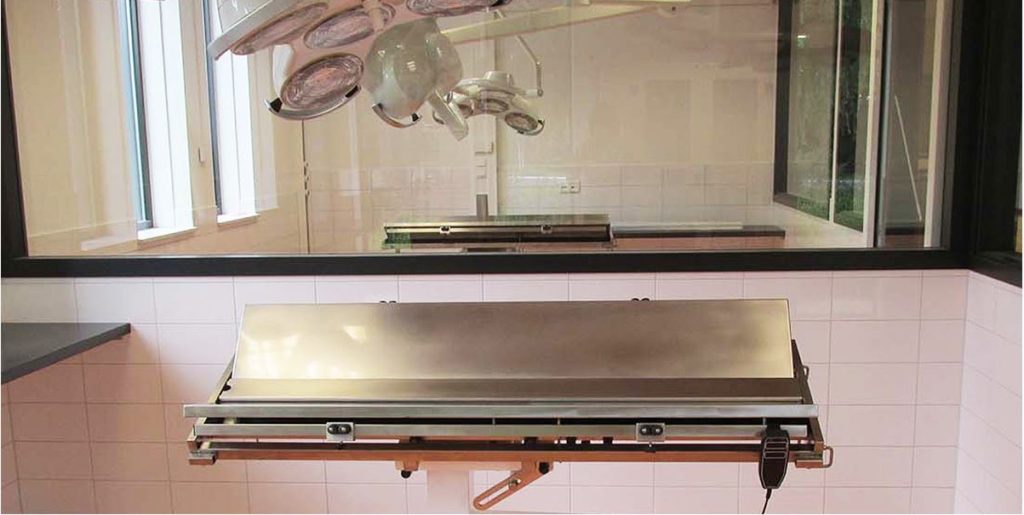 Vyrábíme také zařízení pro veterinární účely. Jedná se především o vyšetřovací a operační stoly různých typů, instrumentační vozíky, držáky lamp, infuzí a další.