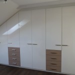 Vestavěné skříně jsou „šité“ přesně na míru podle Vašeho přání. Příjemně změní Váš prostor a naleznou vynikající uplatnění nejen v atypických podkrovních místnostech se zkoseným stropem. Konzultace se zákazníkem je nezávazná a zdarma. Pokud nemáte jasnou představu vytvoříme návrh za Vás rovněž zdarma. Interiér skříně navrhneme dle individuálního přání každého zákazníka. Může obsahovat police, zásuvky, drátěné koše a jednoduché nebo dvojité tyče, kalhotovníky, kravatníky i držáky na hadice od vysavače atd.