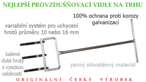 Duté trny (hroty), které používám, jsou určeny pro strojní aerifikaci a snesou nejpřísnější nároky na odolnost a kvalitu práce. Jsou vyráběny ze speciální kalené oceli tvarovány laserem do konického tvaru především na vnitřní straně hrotu. Nejedná se o žádnou jen uříznutou zabroušenou trubku. Ale i takové výrobky se na trhu v poslední době objevují (nejen z Číny). Dbejte proto při výběru aerifikačních vidlí především na kvalitu dutých hrotů. Na těch záleží zda vám půjde práce od ruky a budete z ní mít radost. Nebo se budete při aerifikaci trápit.
