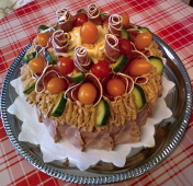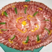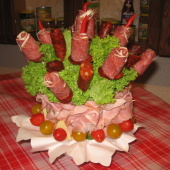 Prodáváme uzeniny, grilovaná kolena a kuřata. Nabízíme zhotovení studených mís na společenské akce, uzeninových dortů a květin z uzenin.