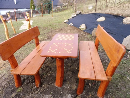Výroba a realizace certifikovaných dětských hřišť z akátu. Dále se věnujeme zakázkové výrobě interiérového nábytku zdobeného ruční dřevořezbou či výrobě kuchyní a veškerého nábytku z masivu i lamina. Rostoucí dětské židle. Pokládka podlah, prodej a montáž dveří a zárubní.