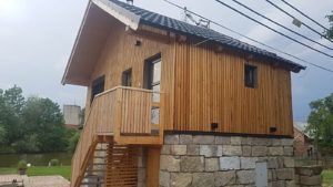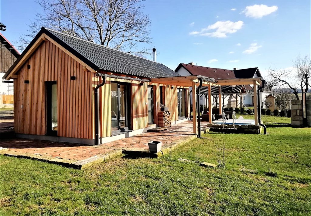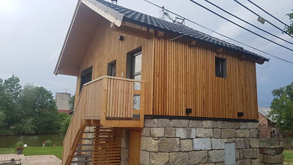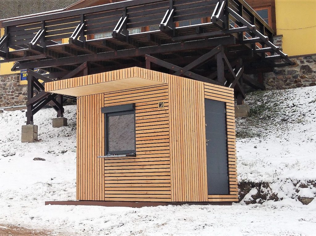 Vytápění lze řešit přímotopy, infrapanely – topné obrazy, nebo kamny na dřevo. Před vlivy počasí chrání obytný i rekreační domek provětrávaná fasáda z modřínových latí a rovná střecha se střešní fólií.
