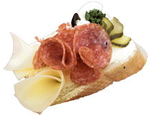 Výroba studené kuchyně, chlebíčků, kanapek, pomazánek, salátů, obložených mís a plněných baget. Zajišťujeme občerstvení na zakázku pro rauty.