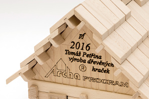 Na přání zákazníka při objednávce nad 10 ks od typu stavebnice vypálíme do komponentů stavebnic ARCHA PROGRAM (trámky a štíty) nápis, nebo zaslané logo ve formátu CDR nebo DWG. Případně převod zaslaného loga zajistíme. Vaše reklama na naše stavebnice.