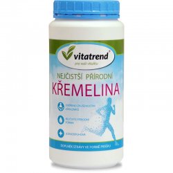 Křemelina Vitatrend neprochází tepelnou a chemickou úpravou jako křemelina průmyslová, neobsahuje jíly a jiné nečistoty, které by ucpávaly důležité póry schránek a díky vysokému obsahu oxidu křemičitého je bohatým zdrojem křemíku. Je tedy ideální pro detoxikaci, blahodárně působí na klouby, kosti, cévy, vlasy, nehty, kůži i další tkáně a také na nervový systém a mozek.